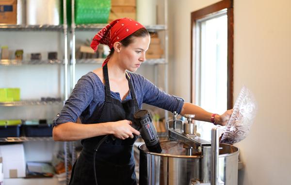 With a background in anthropology and economic development, Carol was especially drawn to the people side of chocolate making, and a 2014 visit to the Norandino Cooperative in Peru was a chance to talk with cacao growers about their cultivation and fermentation techniques, and develop a cacao sourcing relationship. Visiting cacao growers in person and sourcing the sugar in her smaller bars locally have been opportunities to deepen ties both where the cacao originates and where she makes the chocolate itself.