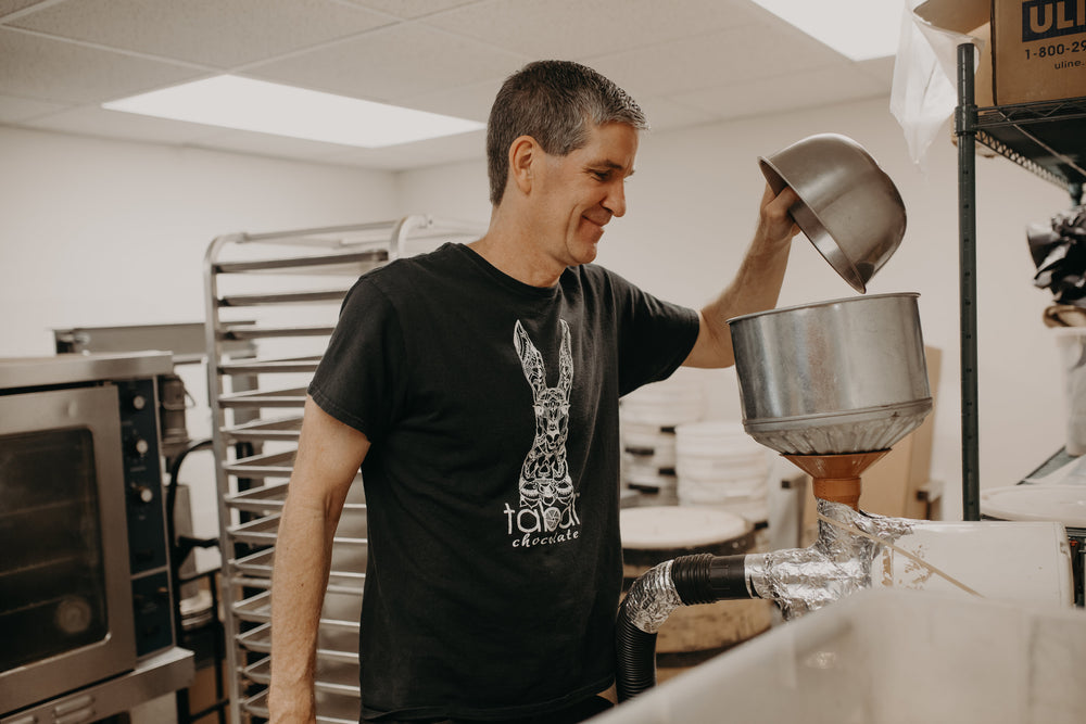 A lifelong chocolate lover, Dan Bieser set out to create the best chocolate imaginable from bean to bar. Using the highest quality ingredients he took over the kitchen and garage of his house. Soon he was asking friends and family to taste different varieties. The reactions were great and lead to engaging conversations long into the night covering topics from chocolate to family, to old childhood memories. It was in those conversations that the idea for Tabal Chocolate began to take root.